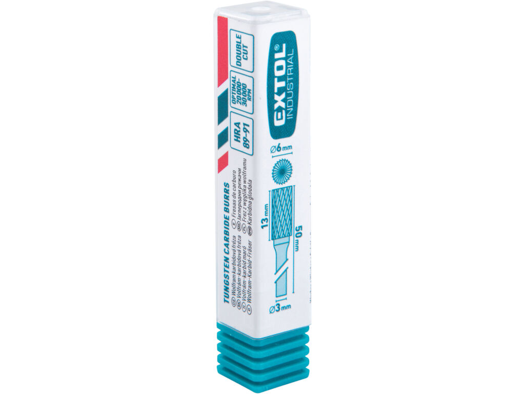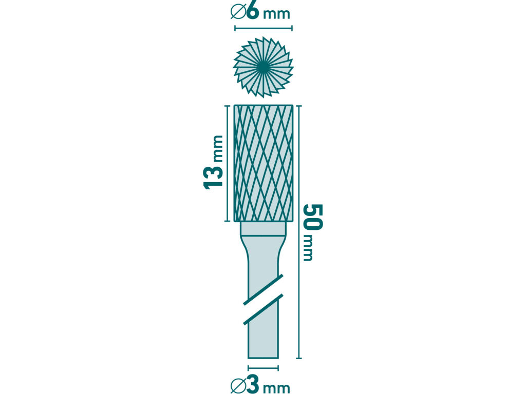 EXTOL INDUSTRIAL fréza karbidová, válcová s čelním ozubením, ?6x13mm, ?stopky 3mm, sek střední (double-cut) (8703813)