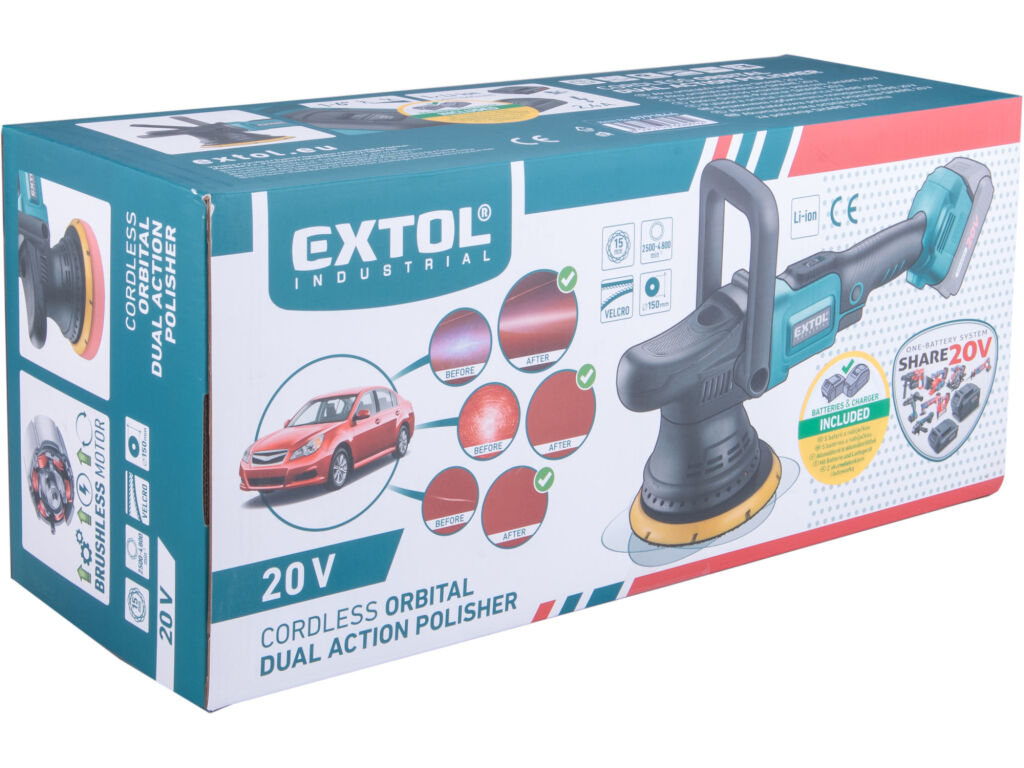 EXTOL INDUSTRIAL leštička orbitální aku SHARE20V, 150mm, BRUSHLESS, 2Ah (8791844)