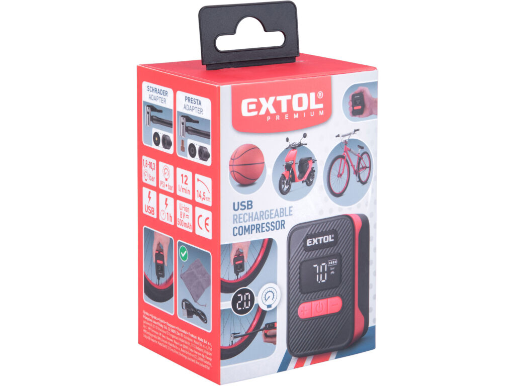 EXTOL PREMIUM kompresor aku, 10,3bar, USB nabíjení (8891512)